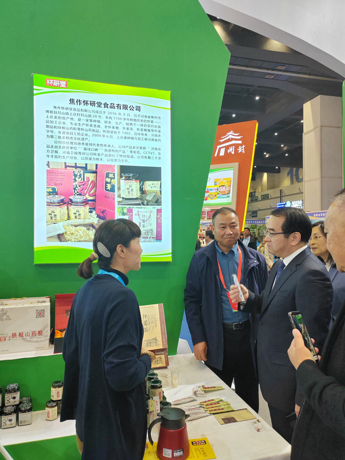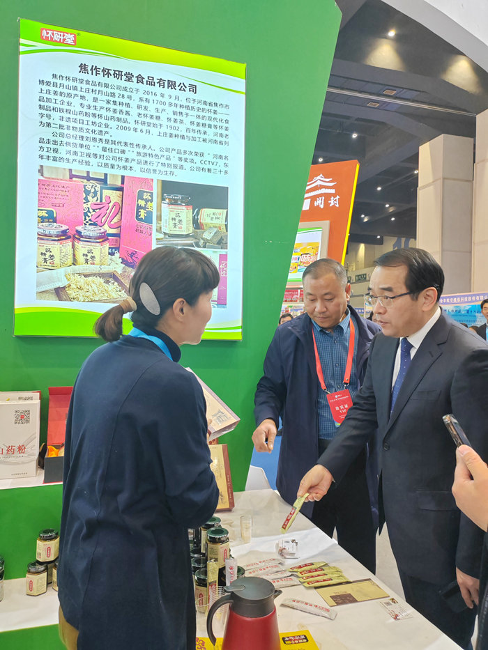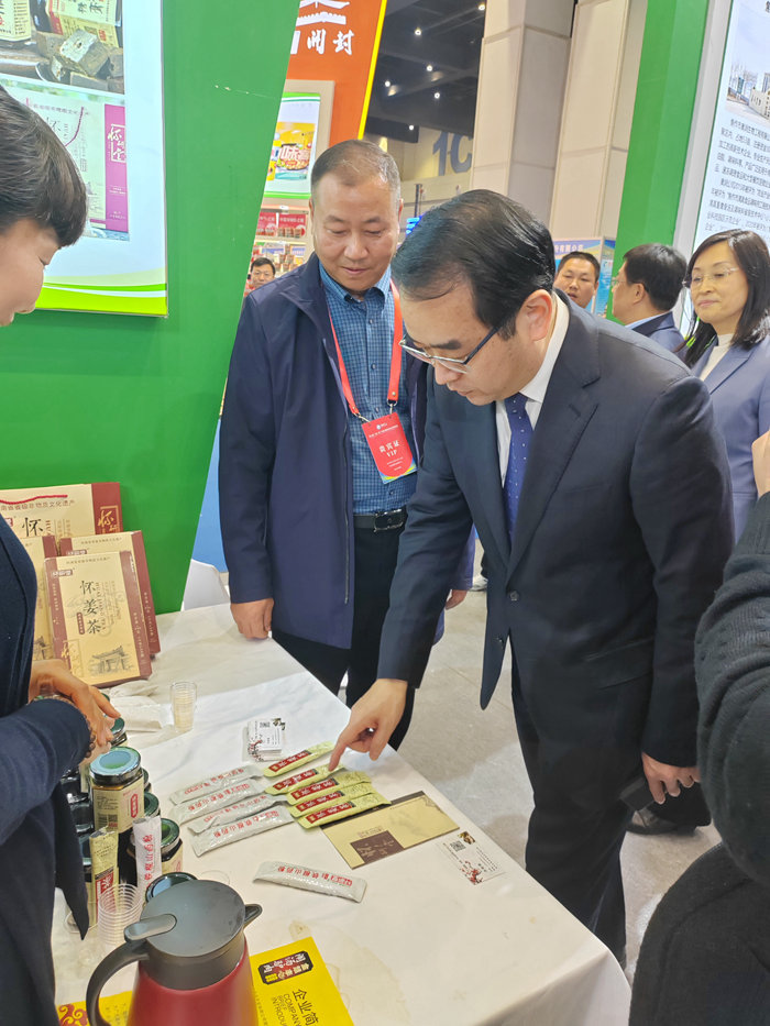 【第二屆“一帶一路”(河南)國際農(nóng)業(yè)合作博覽會】于11月21日~23日在鄭州國際會展中心舉行,20多個國家的政府官員、駐華使節(jié)將參展參會。省農(nóng)業(yè)廳孫廳長、市農(nóng)業(yè)局張局長等領(lǐng)導蒞臨懷研堂展臺,感謝領(lǐng)導對懷姜文化和產(chǎn)品的支持和鼓勵。懷研堂懷姜茶系列喜獲一帶一路國際農(nóng)業(yè)博覽會金獎,感謝省農(nóng)業(yè)廳、市農(nóng)業(yè)局支持感謝博覽會組委會的認可!